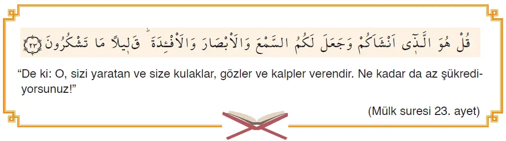 Mülk Suresi, 23. Ayet: Nimete Şükür