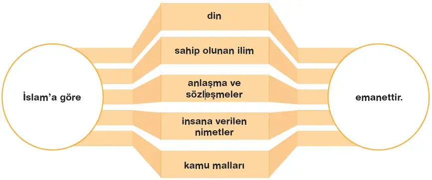 Ayette yer alan kavramlardan biri olan emanet; “güvenmek, korku ve endişeden emin olmak, güvenilen bir kimseye koruması için geçici olarak verilen şey” anlamlarına gelir. Kişinin sahip olduğu nimetler ve makamlar birer emanettir. İslam dini bütün bunların korunmasını, muhatap ve ilgililerine teslim edilmesini, hangi amaçla verilmiş ise ona uygun olarak kullanılmasını ister.